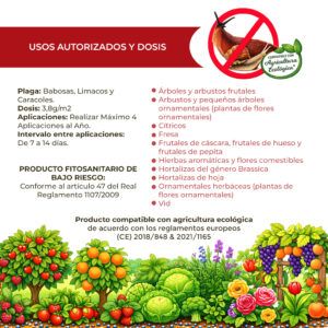 Anticaracol y babosa FERROKILL es un cebo granulado a base de fosfato férrico para eliminar babosas y caracoles de forma ecológica. Resistente a la lluvia hasta 14 días, seguro para mascotas y compatible con agricultura ecológica. Envase de 500 g con sistema abre‑fácil que cubre hasta 132 m². Aplicación sencilla a razón de 3,8 g/m² sin plazo de seguridad: protege tus cultivos y cosecha con tranquilidad.